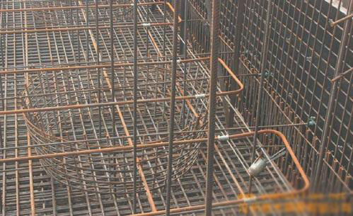 5、鋼筋籠放入樁孔時(shí)應(yīng)防止扭曲,管與管平行垂直,聲測管隨鋼筋籠分段安裝,每埋設(shè)一節(jié)均應(yīng)向承臺冷卻管內(nèi)加注清水,承臺冷卻管安裝完畢后應(yīng)加蓋或加塞封閉,以防澆注混凝土?xí)r落入異物,堵塞孔道。